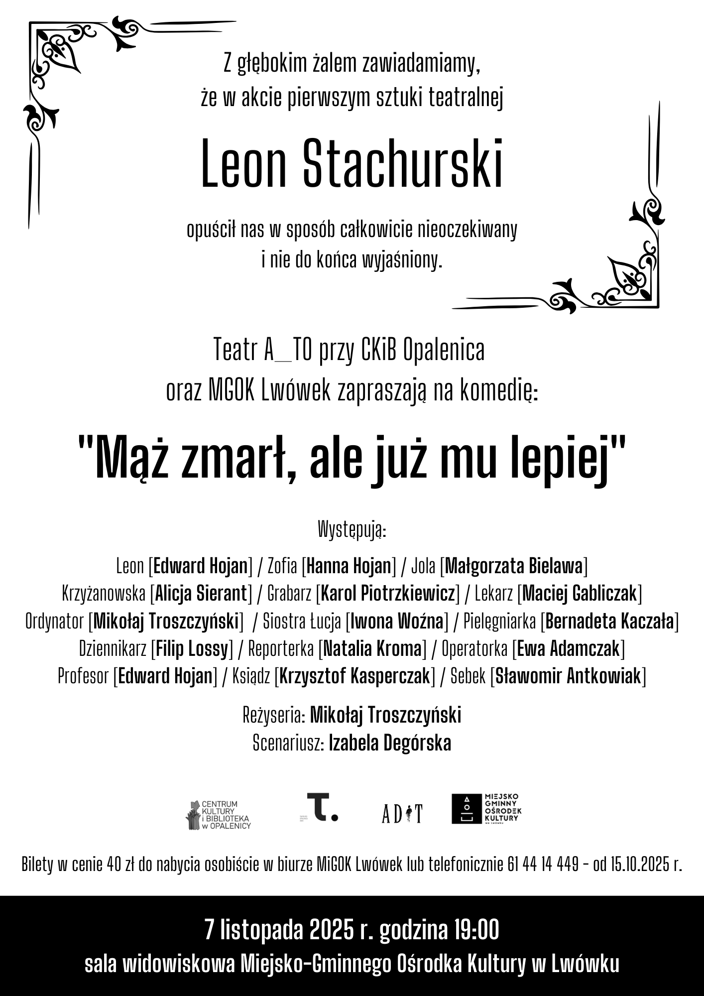 Spektakl „Mąż zmarł, ale już mu lepiej” – 07.11.2025 r.